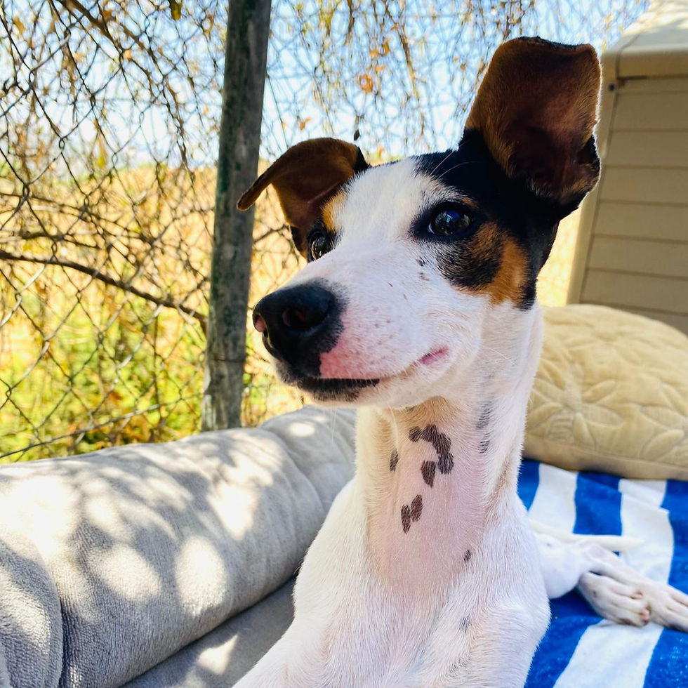 De prachtige Shizuka kwam op een manier bij ons terecht die we niet hadden verwacht: plotseling liep ze rond, heel mager, verward en bang, in ons asielgebied, en niemand had enig idee hoe ze bij ons terecht was gekomen. Toen we de camera's controleerden, zagen we dat er een man was die haar het asielgebied in droeg, haar vervolgens losliet zonder halsband of riem en vertrok. Diezelfde avond beseften we dat de kleine Shizuka zich helemaal niet goed voelde, en om middernacht ging ze met onze verzorger naar de SOS Malaga-kliniek, waar ze positief werd gediagnosticeerd met het parvovirus.